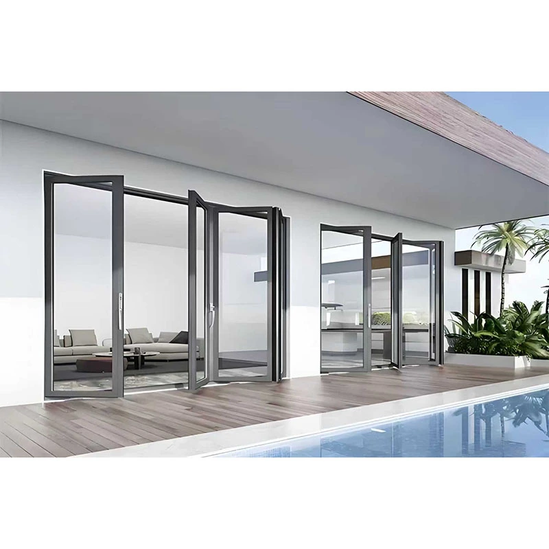 Questa serie di porte pieghevoli in lega di alluminio utilizza profili selezionati in lega di alluminio 6063-T5 ad alta precisione. Lo spessore della parete del profilo soddisfa gli standard nazionali e i principali punti di sollecitazione sono rinforzati. Offrono un'eccellente resistenza alla deformazione e alla corrosione, adattandosi alle frequenti aperture e chiusure quotidiane e ai vari ambienti esterni. Dotato di un sistema di trasmissione dell'hardware pieghevole progettato su misura, insieme a pulegge silenziose e strutture di smorzamento, il processo di apertura e chiusura è fluido e senza interruzioni, riducendo efficacemente il rumore e prevenendo la collisione e l'usura delle ante della porta, migliorando significativamente l'esperienza dell'utente e la durata dei componenti. Il sistema di tenuta utilizza più strisce di tenuta EPDM, combinate con una precisa tecnologia di montaggio del telaio e dell'anta, bloccando efficacemente vento, acqua e rumore, garantendo isolamento termico e silenziosità interna e adattandosi a diversi scenari climatici.