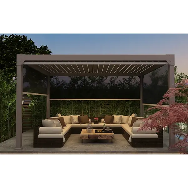 In qualità di produttori di gazebo professionali, incorporiamo un design meticoloso nei nostri gazebo elettrici retrattili, combinando motori silenziosi importati e un sistema di drenaggio nascosto. Ciò garantisce che i nostri gazebo possiedano caratteristiche fondamentali di controllo intelligente, stabilità strutturale e resistenza agli agenti atmosferici, supportando anche la personalizzazione personalizzata di dimensioni, colore e moduli funzionali. Possono integrare accessori come illuminazione e tende a rullo, adattandosi a diversi scenari come cortili di ville, terrazze e aree ricreative commerciali, creando un'esperienza di svago intelligente e pratica per vari spazi esterni.